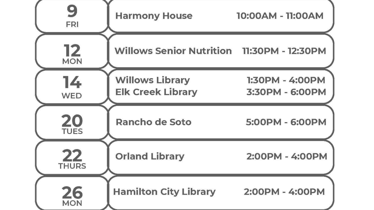 December Schedule at the Orland Library. Community Health Care Workers are available…