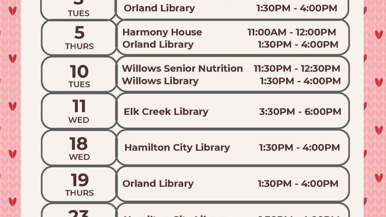 February 2026 Schedule at the Orland Library. Community Health Care Workers are…