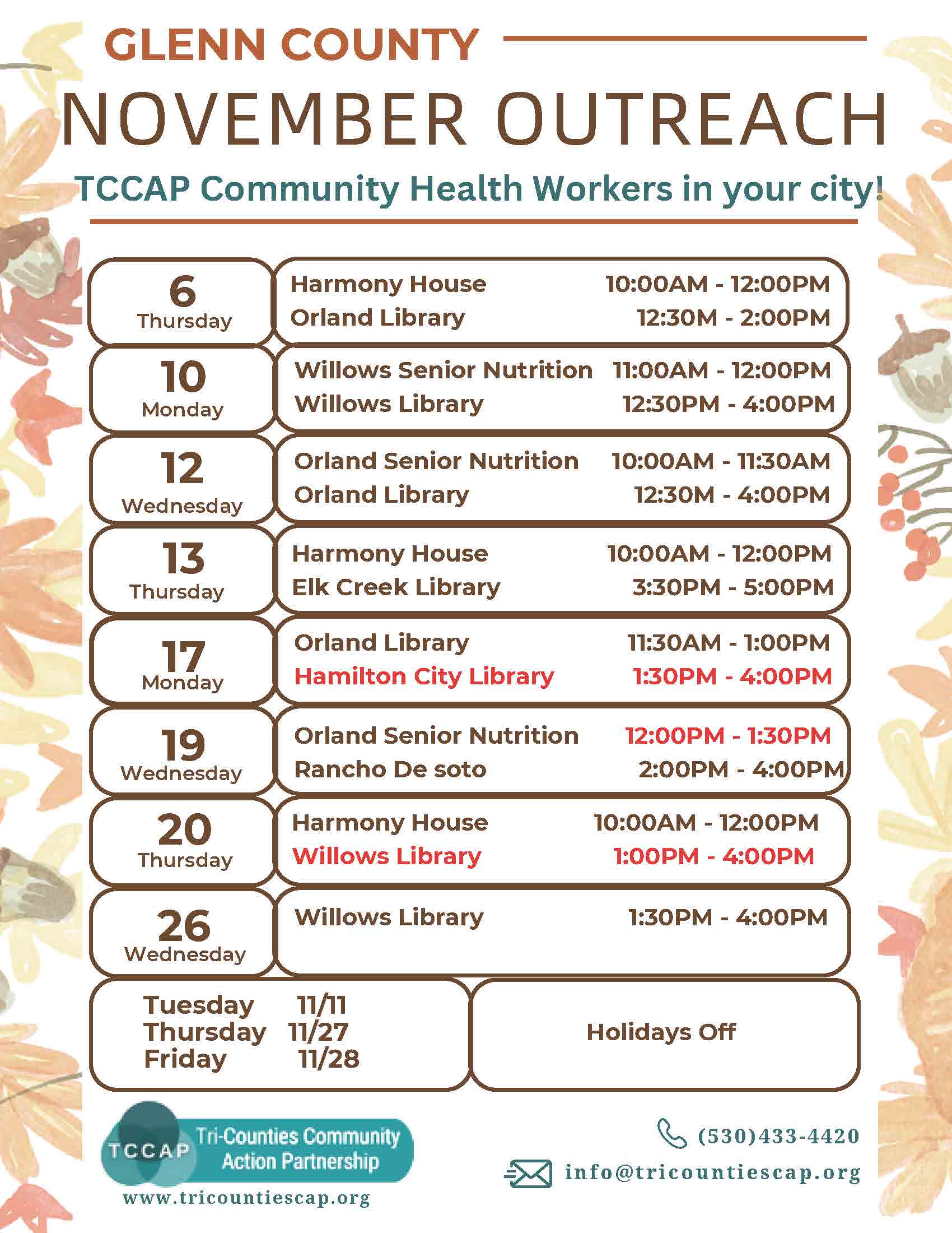 Community Health Workers November 2025 Schedule Community Resources, Events, News, Programs/Offerings Posted on November 10, 2025 by orlandfreelibrary Share: