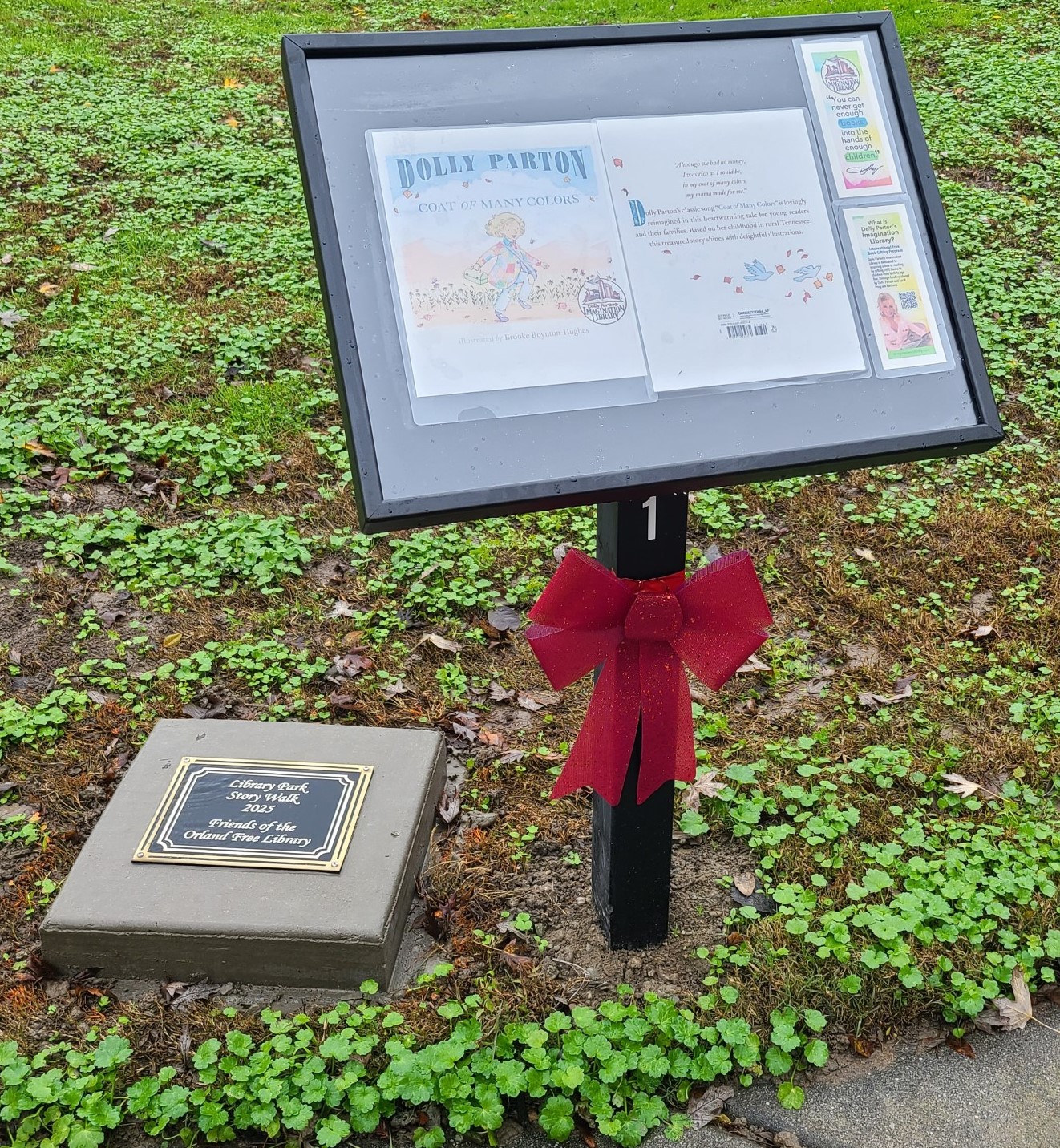 Kicked off with seed money from the Friends of the Orland Free Library and brought to fruition with the help of 16 local individuals, families, and community groups who sponsored individual podiums, the Library Park Story Walk ribbon cutting was held in December of 2025.