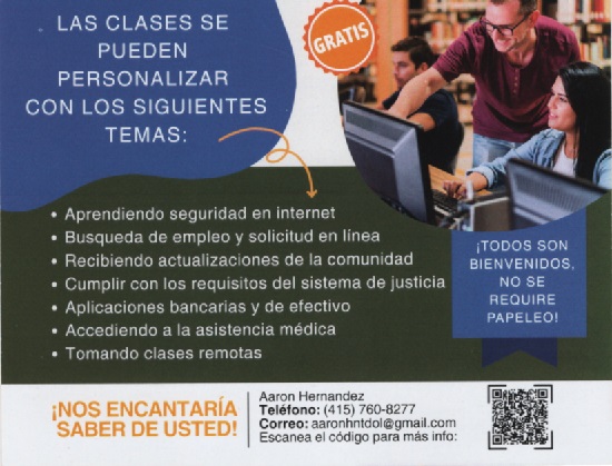 Learning internet safety, job searching/applying online, banking and cash apps, meeting justice system requirements, taking remote classes, accessing healthcare, receiving community updates.