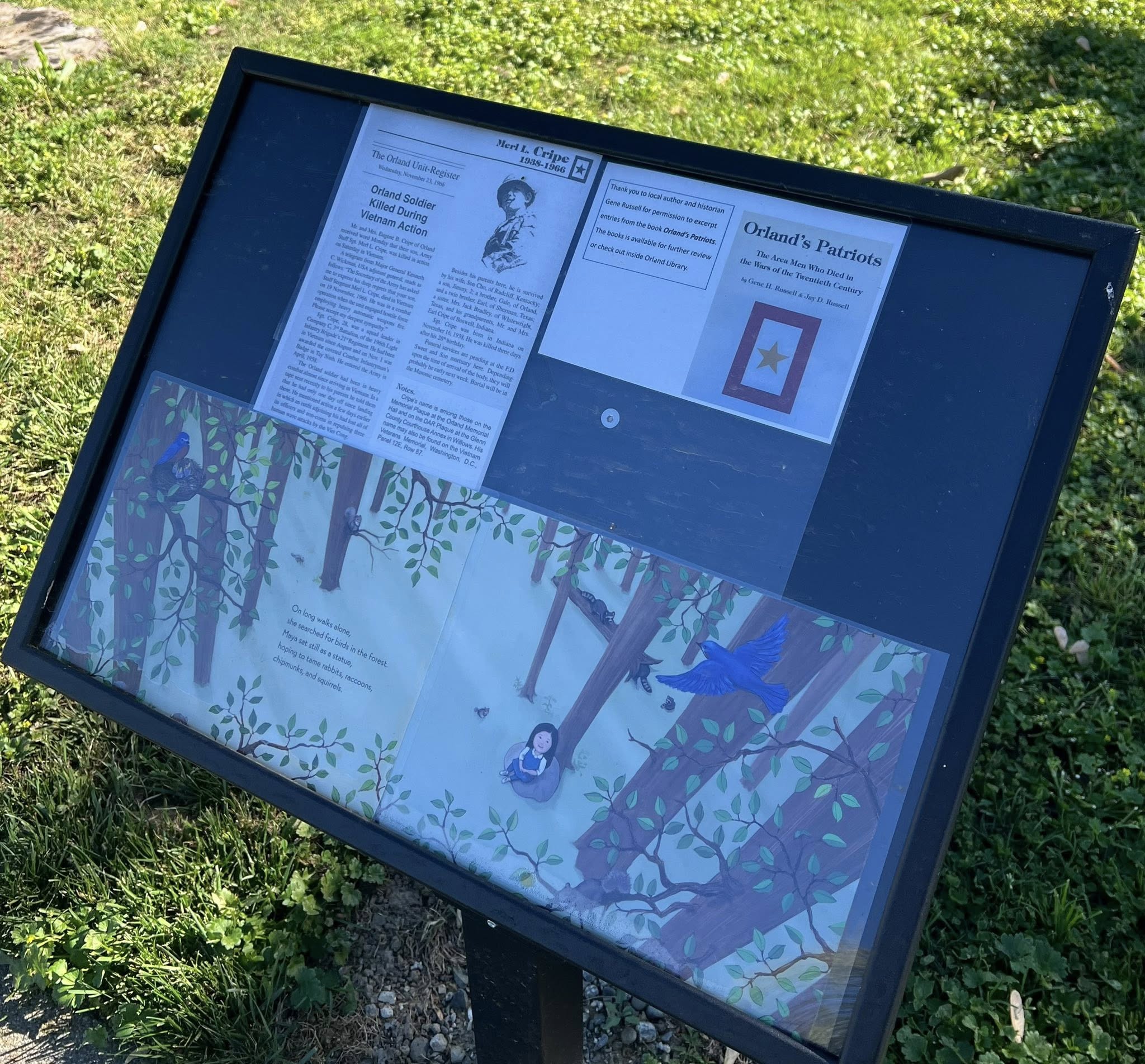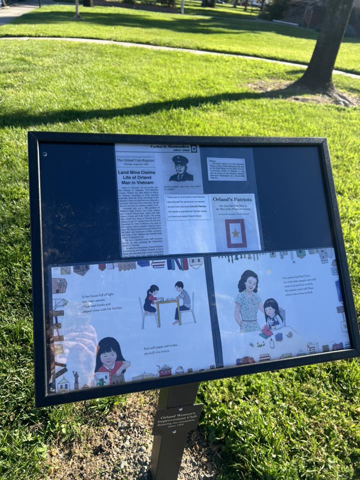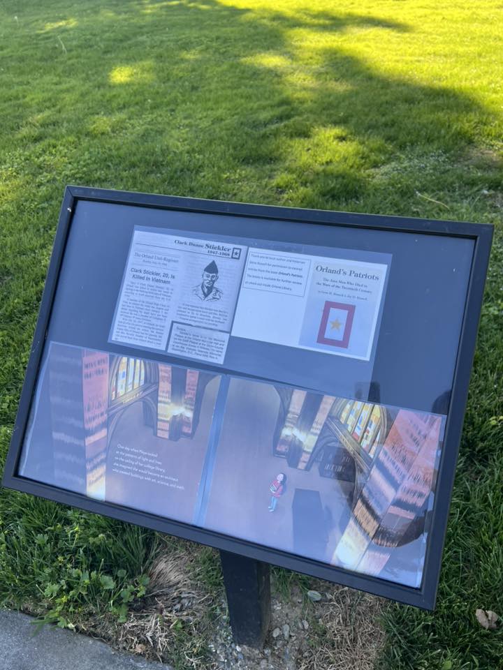 The Library Park Story Walk has been updated with information about the Orland men who were killed in the Vietnam War and where to locate their names on “The Wall That Heals” Vietnam Veterans Memorial Replica.
